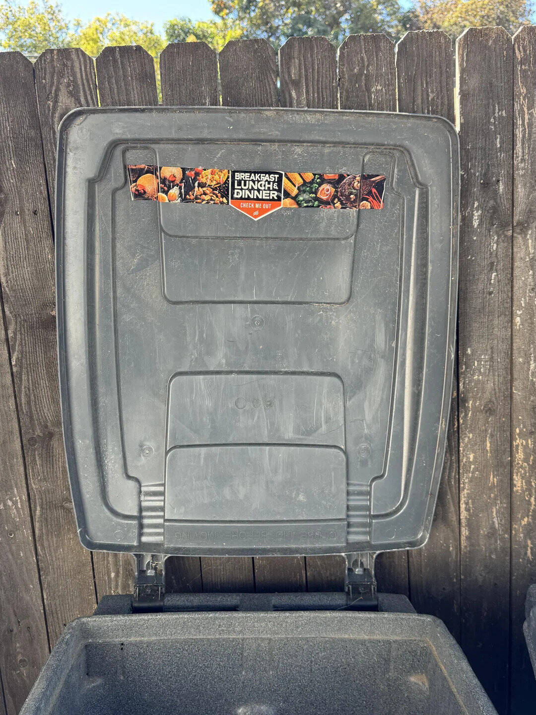 15. “Someone (probably a raccoon) put this on the inside of our trash can lid”