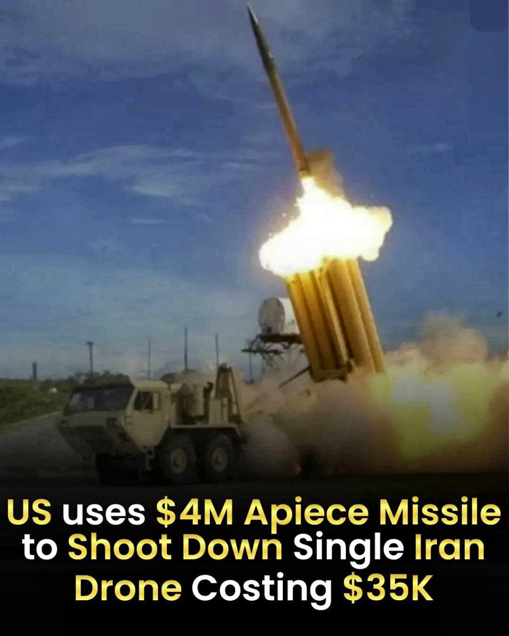 The U.S. military has been forced to use very expensive interceptor missiles — sometimes costing around $4 million apiece — to shoot down Iranian drones that cost roughly $35,000 each, highlighting a big cost imbalance in the Gulf conflict.