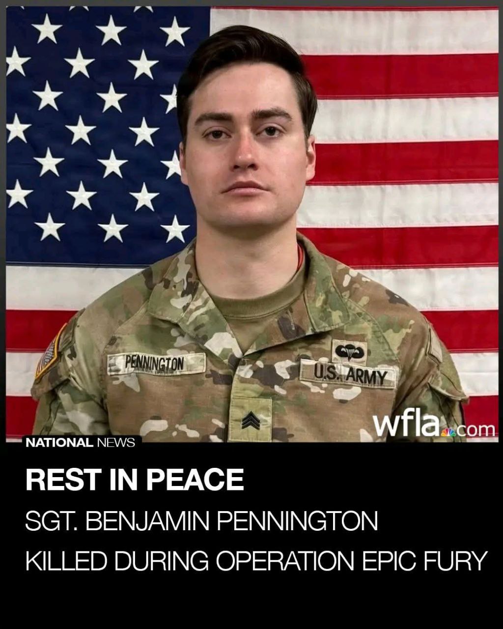 Sgt. Benjamin N. Pennington has been identified as the seventh soldier killed during Operation Epic Fury. after an Iranian attack in Saudi Arabia. He was 26.